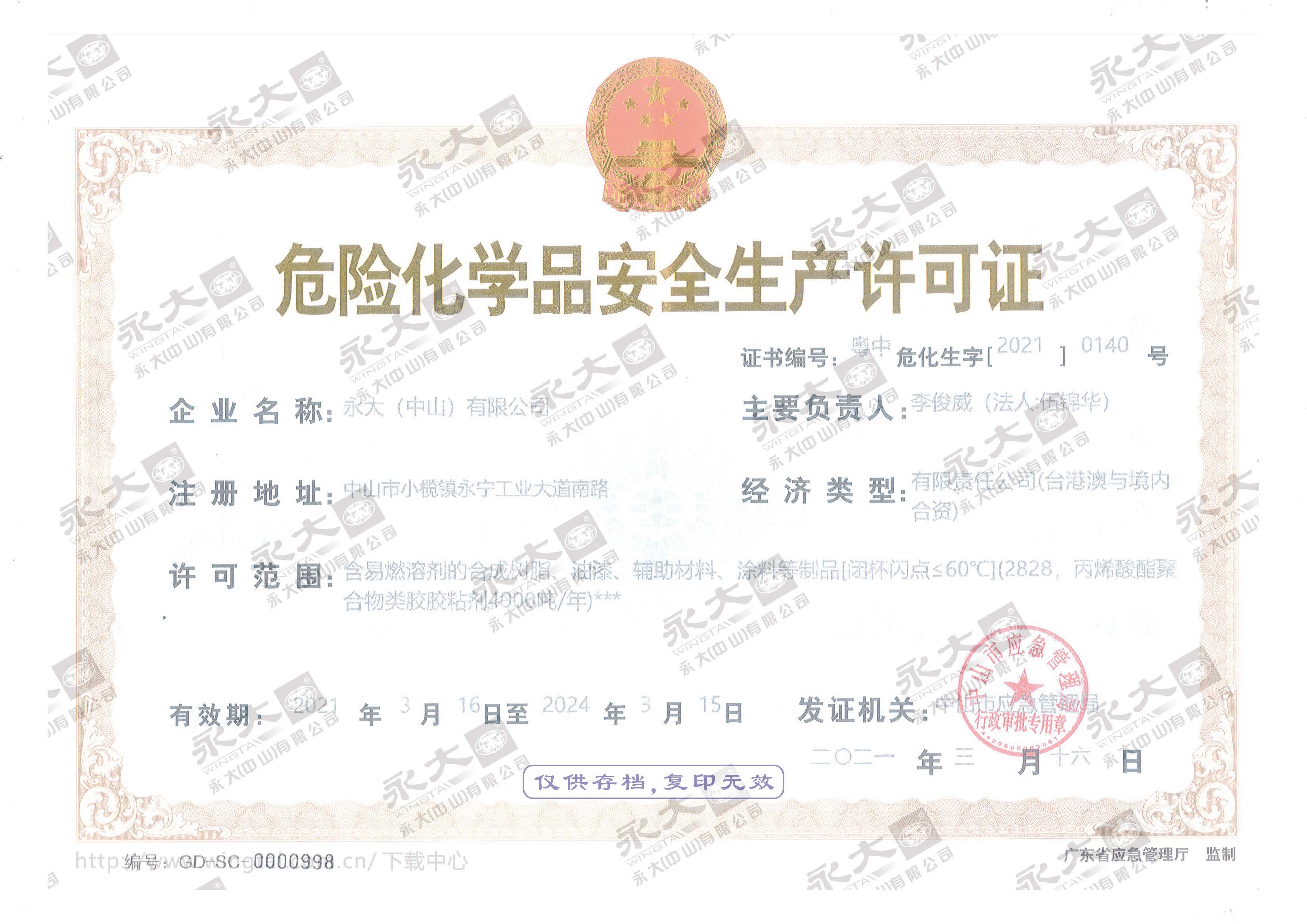 危險化學(xué)品安全生產(chǎn)許可證